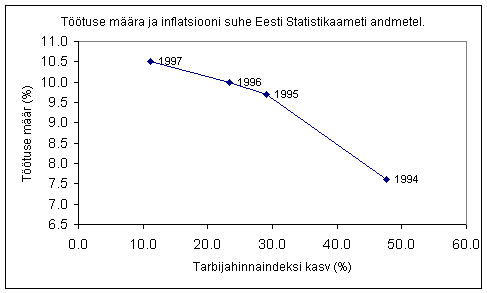 tööpuudus kõrgel, inflatsiooni kiirenedes tööpuudus väheneb, sest inimesed