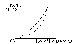 But before I must interpret the equality a bit further. Equality is easily measured by the income differentials of people and can be expressed as a Lorenz curve: